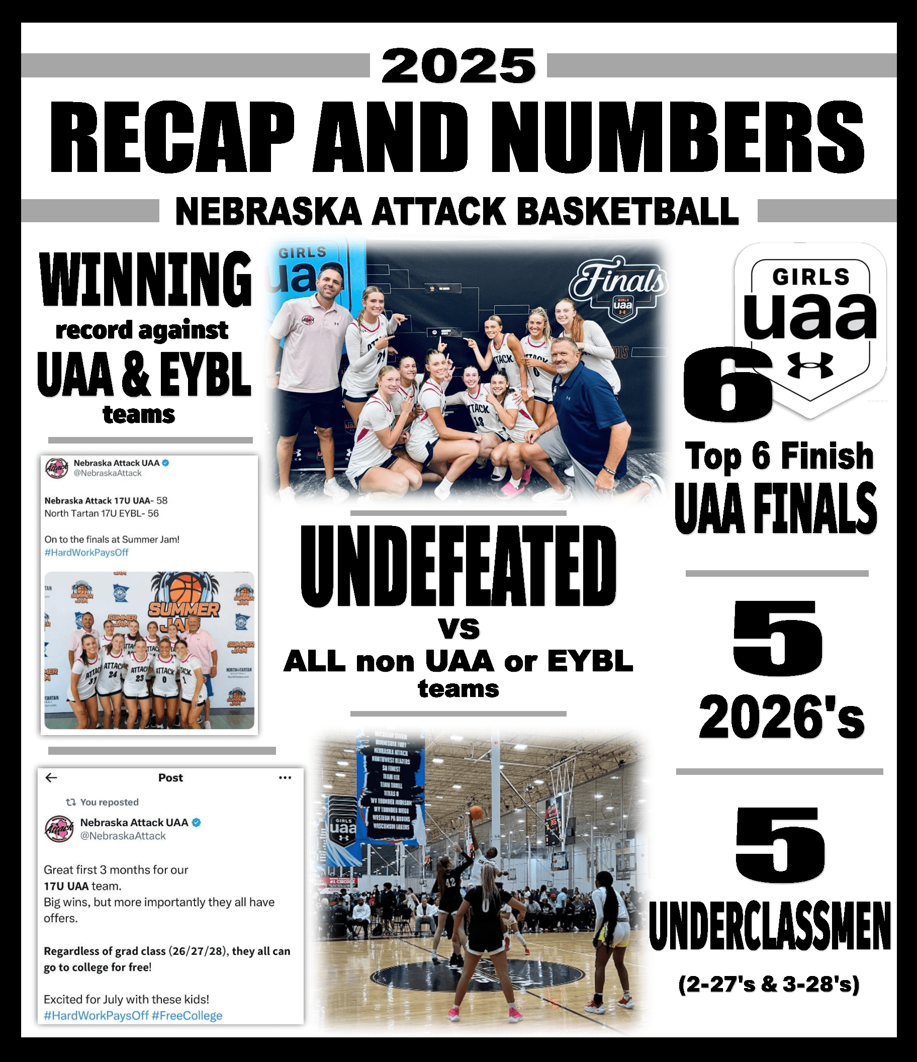 Nebraska Attack Basketball was established as a girls basketball program in 2015 and has made a positive impact on youth in the state of Nebraska and on the national level ever since. Our primary goal is to provide an educational and national-level competitive basketball program for girls and young women that teaches commitment, discipline, fundamentals, leadership skills, and work ethic. Our focus is to help girls become not only great basketball players, but stronger leaders, and better people.